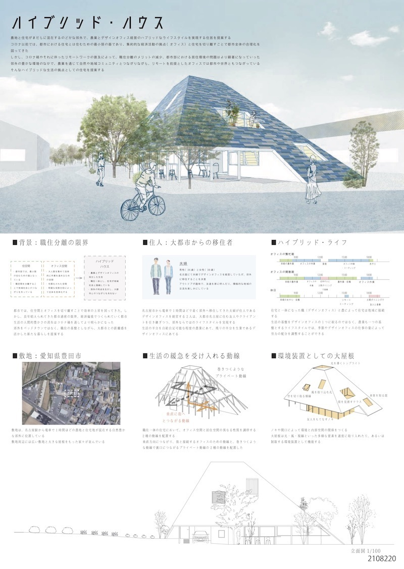 ⑨夏休みを使って取り組んだこともあり、長い時間をかけてじっくり住宅設計と向き合う機会を得られたのはとても勉強になりました。 他の受賞者の方の作品からも刺激を受けることが多く、時代の節目でもある今、これからの住宅の在り方を多様な視点から考えることが出来ました。